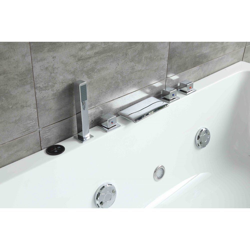 Lyra badekararmatur i krom tilbyder en moderne og funktionel løsning til dit badeværelse. Det stilfulde 5-hullers design giver dit badekar et minimalistisk og eksklusivt look, perfekt til et moderne badeværelsesinteriør. Denne vandhane er lavet af holdbare materialer med en højkvalitets kromfinish, og er både holdbar og nem at vedligeholde.
