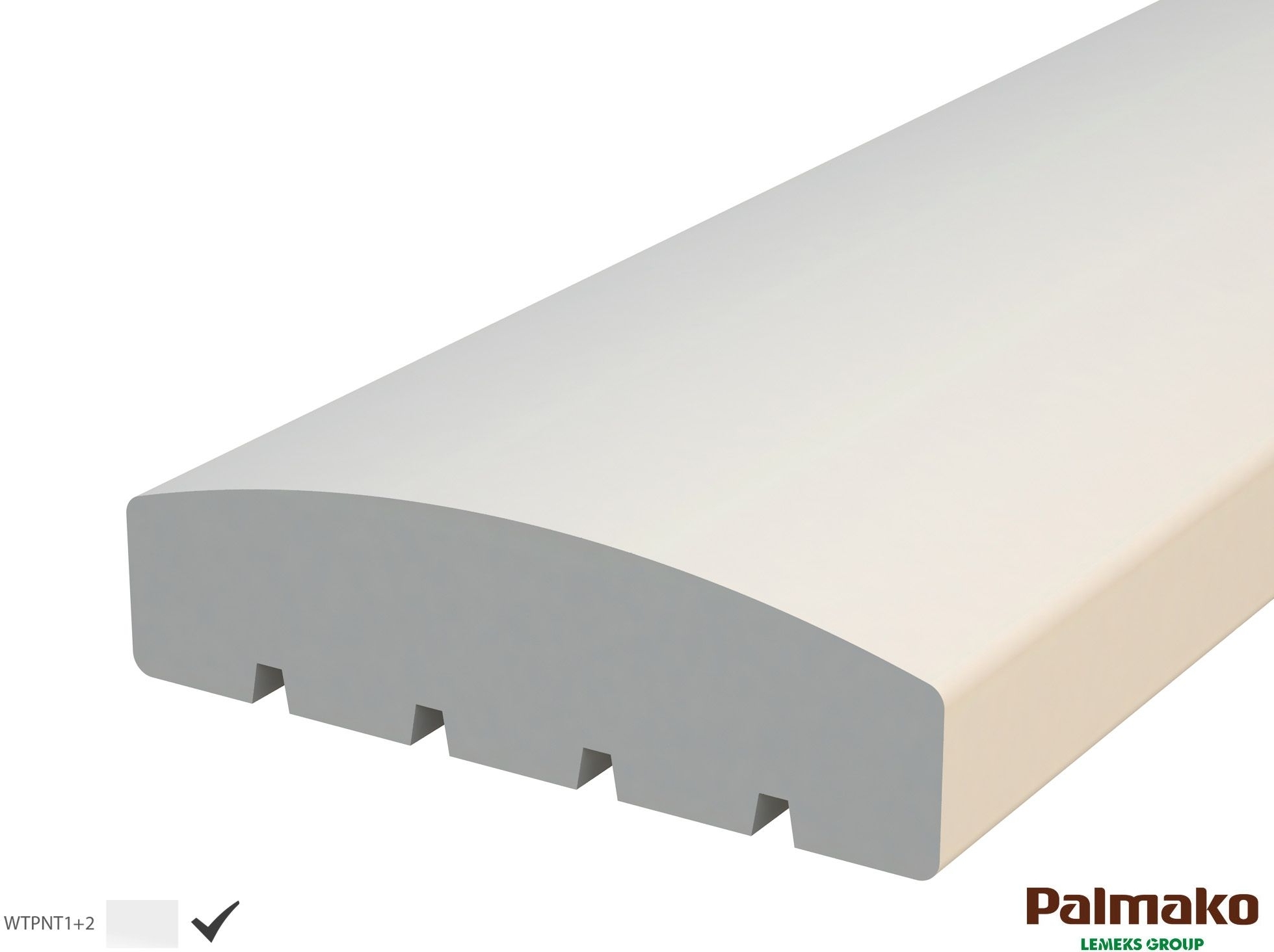 Afrundet overligger til altanrækværk - 34x145x2100 mm - Hvid