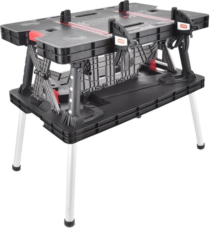 Let og bærbart universal arbejdsbord. Ekstremt slidstærkt arbejdsbord. Pakken indeholder to 12"/30 cm klemmer. Max bæreevne 453 kg. Vægt 11,3 kg.