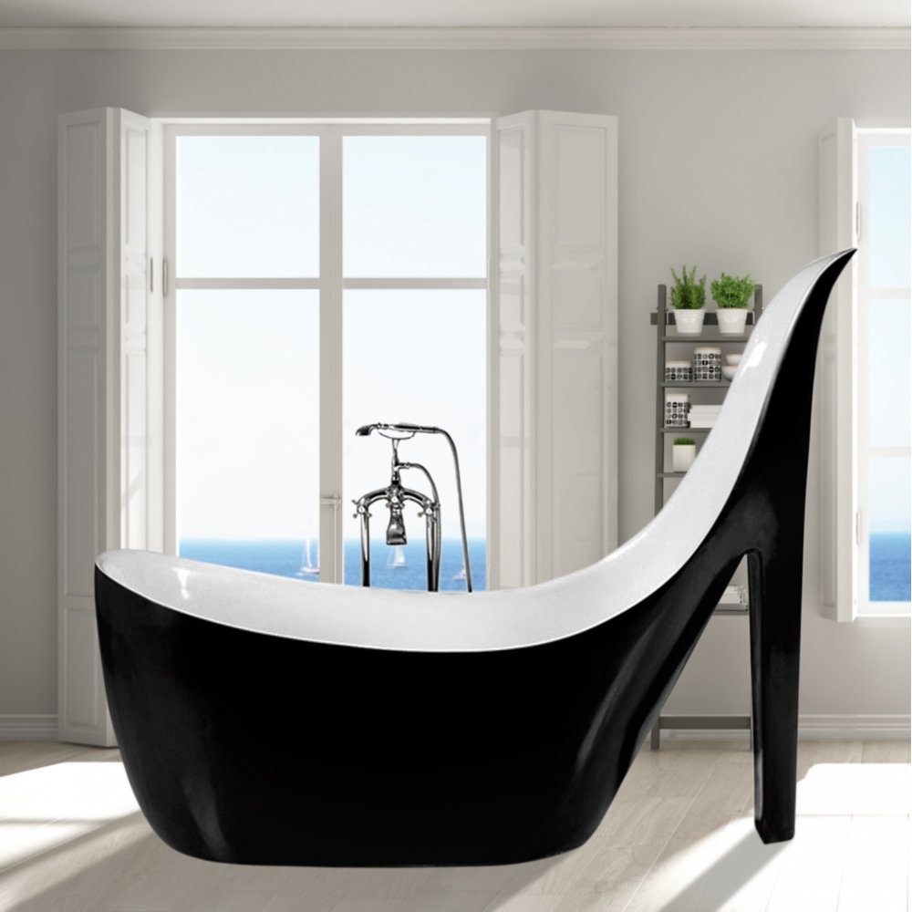 Dette unikke badekar er til dig, der ønsker at give dit badeværelse et ekstra eksklusivt præg. Formen på en damesko gør badekarret til et iøjnefaldende midtpunkt, og den støbte konstruktion i ét stykke giver en stabil og solid fornemmelse. Badekarret kan placeres frit i rummet eller ved siden af en væg, afhængigt af din præference.