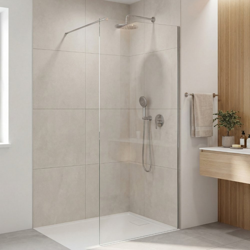 Denne walk-in brusevæg Zen er designet til at give dit badeværelse en ren og moderne følelse. Zen bruseskærmen er lavet af 8mm hærdet klart glas og med en elegant aluminiumsramme i sølvfinish er dette en perfekt løsning til dem, der ønsker et åbent og minimalistisk brusedesign. Fås i flere størrelser, der passer til alle typer badeværelser.