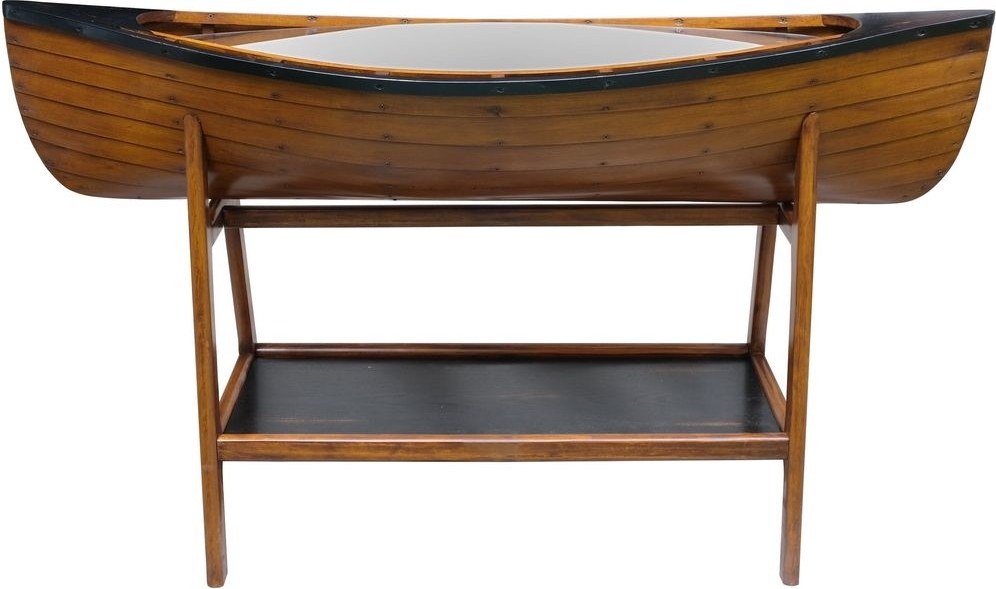 Konsolbord i form af en båd. Lavet af massiv fyr, malet som en klassisk båd. Glasskiven dækker båden, hvor du kan indstille nipsgenstande.