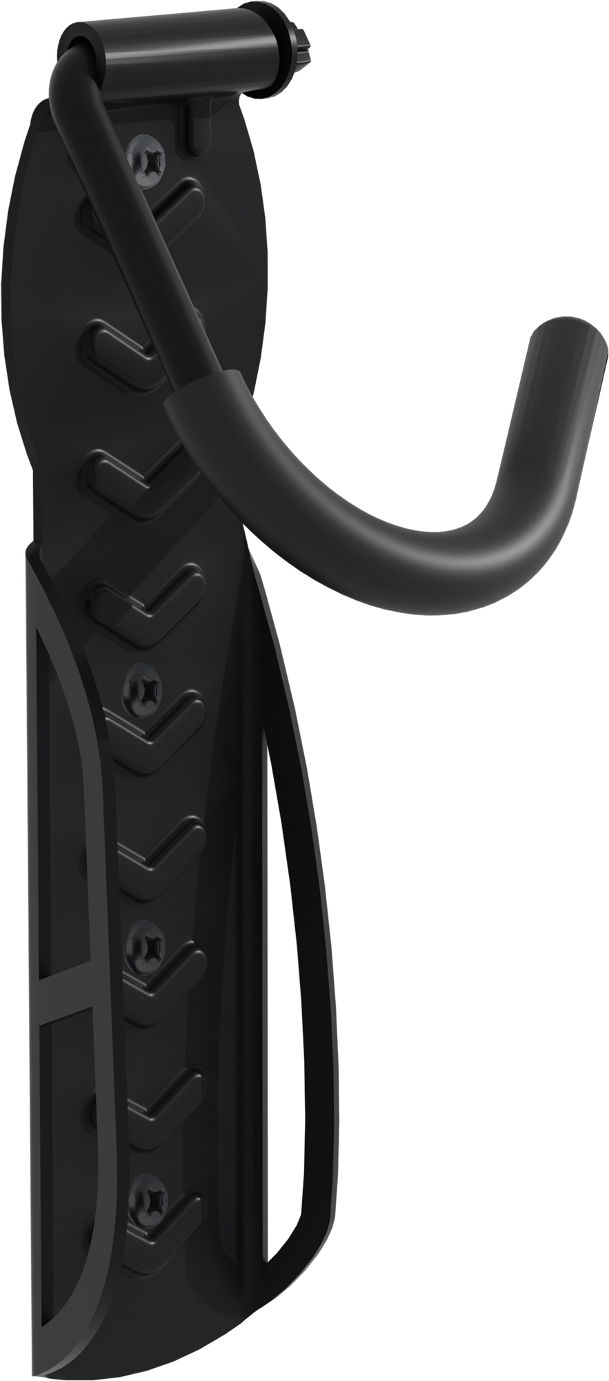 Brug det lodrette cykelstativ og opbevar din cykel sikkert. Hæng enkelt og hurtigt forhjulet på den gummibeklædte krog, og lad baghjulet hvile mod væggen for pladsbesparende lodret opbevaring.