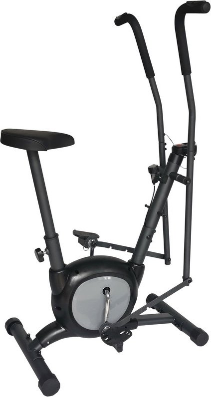 Den dobbelte cykel er en smart kombination af en crosstrainer og træningscykel, der sparer den plads, som en almindelig crosstrainer normalt optager. Cyklen er også lettere og er derfor nemmere at flytte. Fantastisk udstyr til dem, der ønsker at holde sig god form og ved godt helbred hjemmefra. Computersystem og skærm viser tid, hastighed, distance og kalorieforbrænding