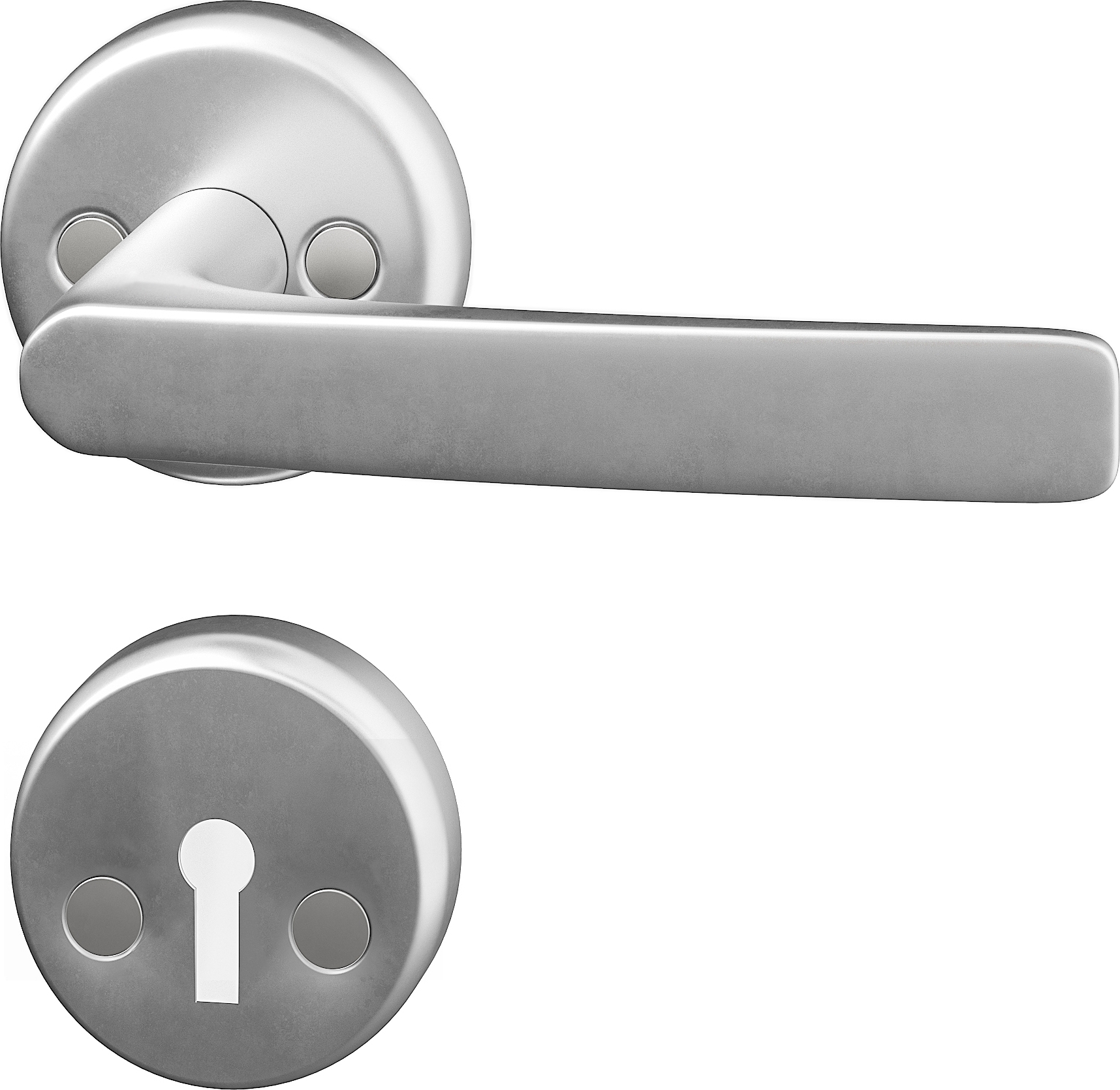 Håndtag og nøgleskilt i moderne design til indvendige døre. Sættet er lavet af aluminium.