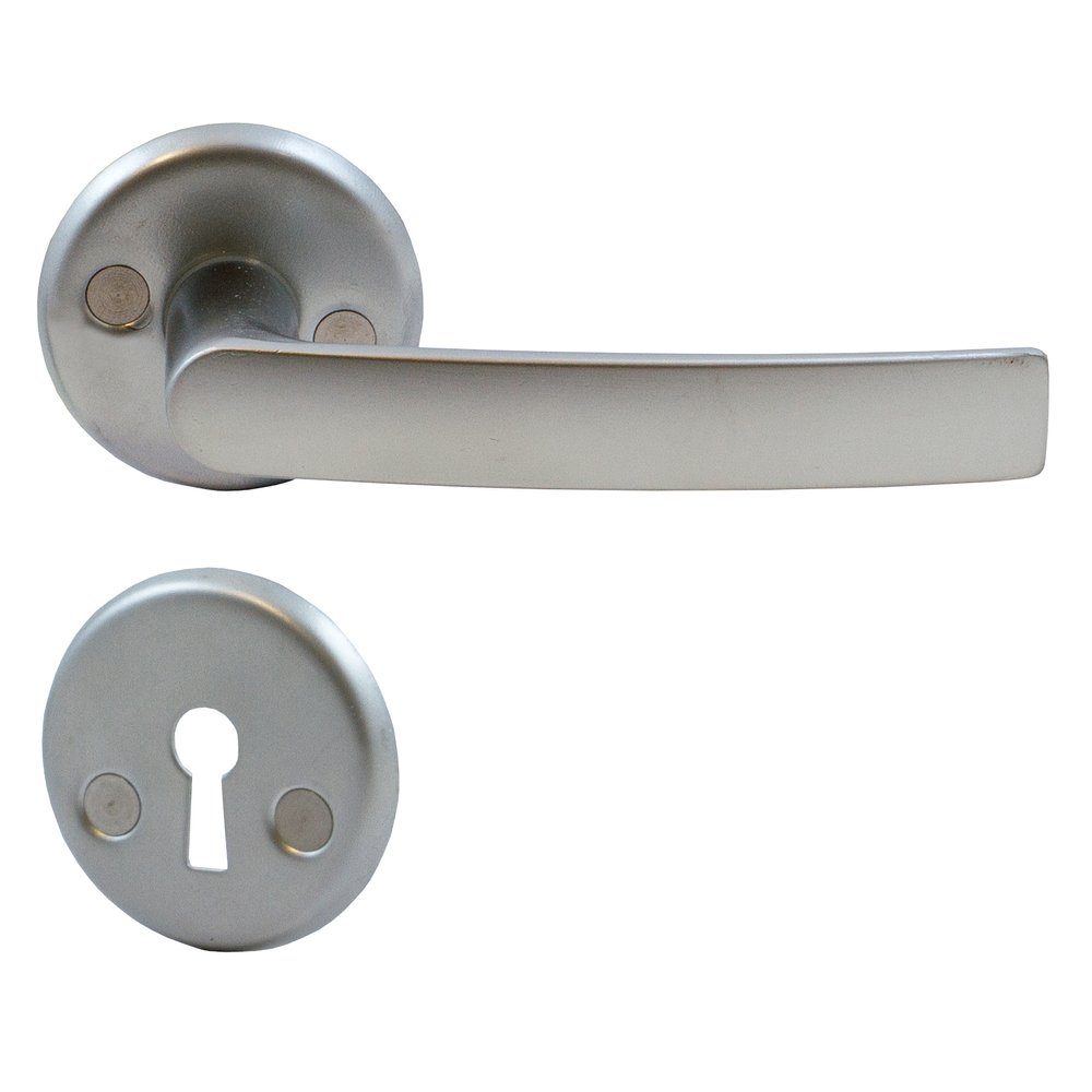 Et fint indvendigt dørhåndtag i mat krom, hvor nøgleskilt er inkluderet.