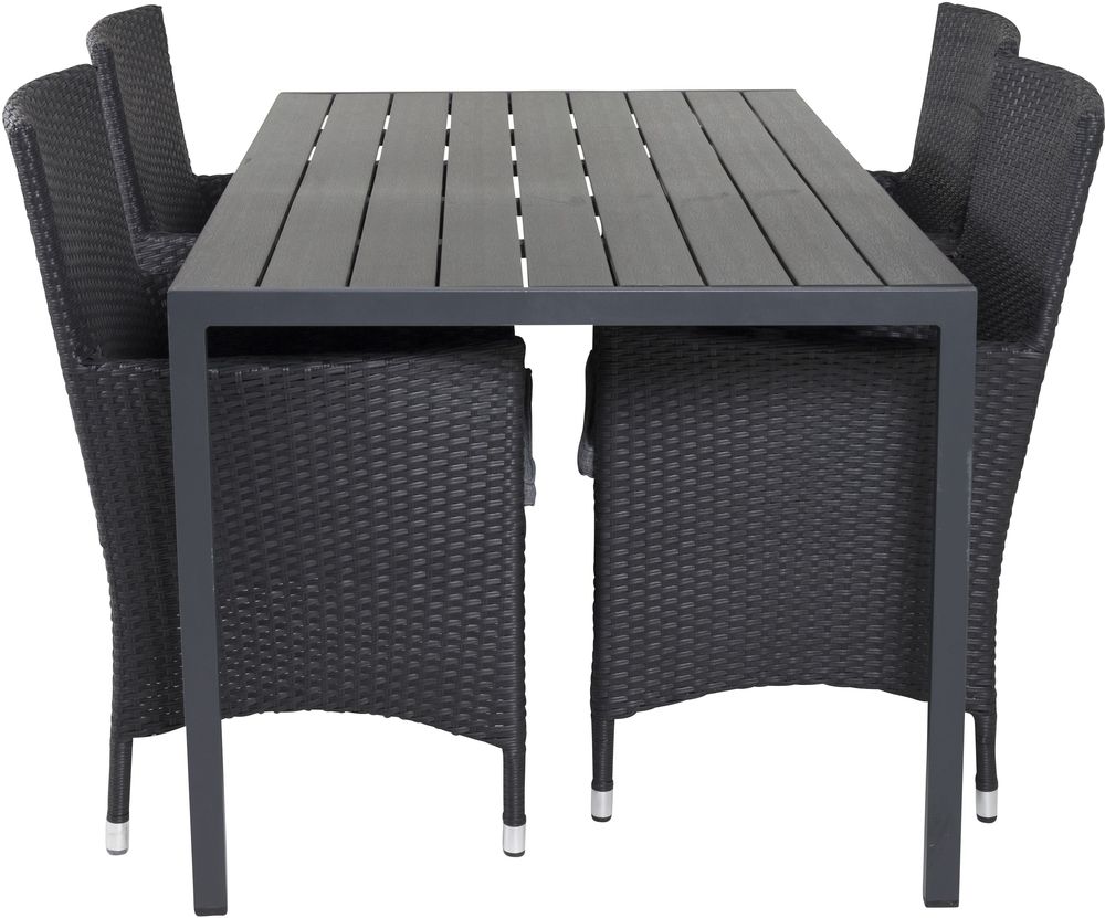 Ervalla Spisegruppe (150x90) - Sort - 4 Stole