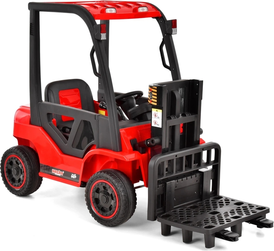 Akku legetøjskøretøj/gaffeltruck til børn - Det er muligt at styre kørsel frem og tilbage, indstille hastigheden fra 2 til 6 km/t og selvfølgelig hæve og sænke forgaflerne. Gaffeltrucken leveres også med en gratis plastikpalle, hvorpå børn kan opbevare lasten og derefter håndtere den som en rigtig lastbil. Den har også lys, MP3-afspiller med USB og bluetooth.