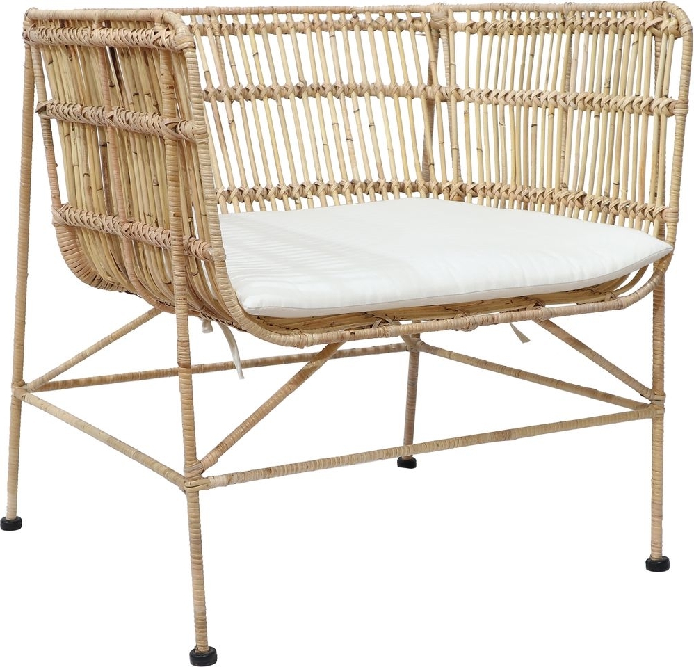 Galice lænestol i naturfarvet rattan med stabilt metalstel, betrukket med rattan. Der medfølger også en 3 cm tyk cremefarvet sædehynde. Galice-serien indeholder også en sofa og sofabord.