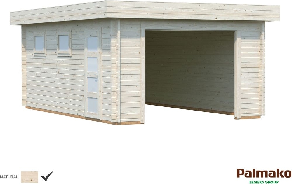 Dette byggesæt leveres med en sidehængt port. Denne garage er også tilgængelig med tag-skydeport eller uden port.