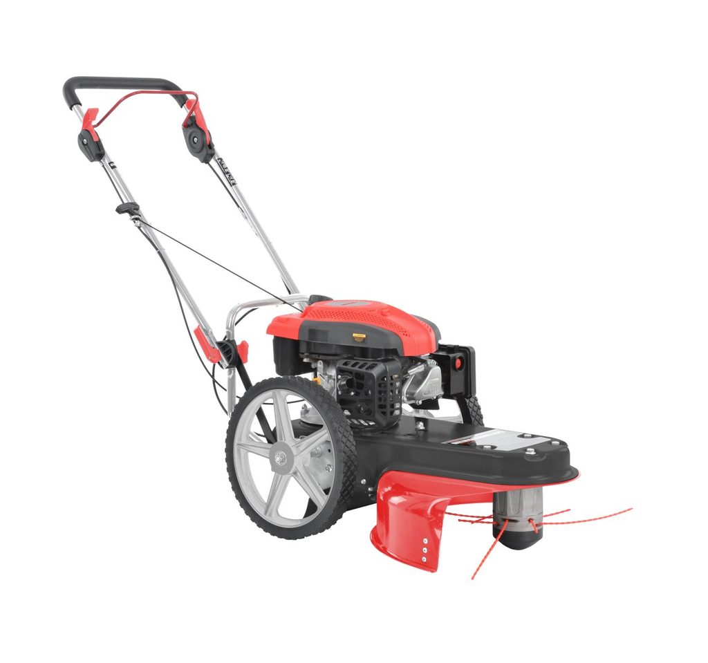 Græstrimmer på hjul, består af et standard-trimmerdesign med lange, robuste trimmertråde. Maskinen kan klare trimmeropgaver, men i større skala, da arbejdsbredden er betydeligt større og vil kunne udføre arbejdet mere effektivt.
