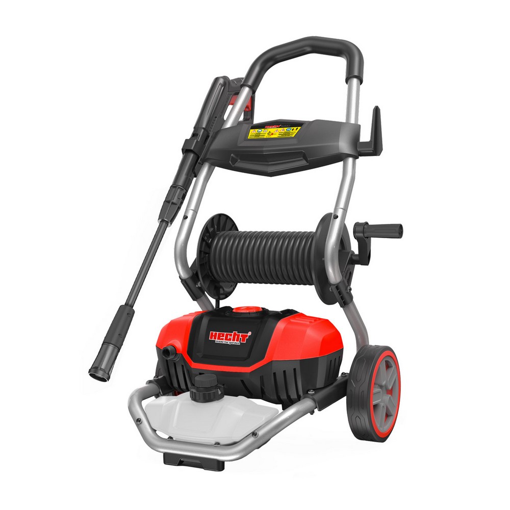 Leveres med højtrykslange, tilslutning til vandindløb, bøjle, justerbar dyse, slangeruller.