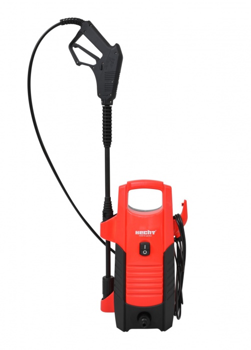 Udstyret med flaske til rengøringsmiddel med skumstråle, 3 m strømkabel og 3 m trykslange med vaskepistol.