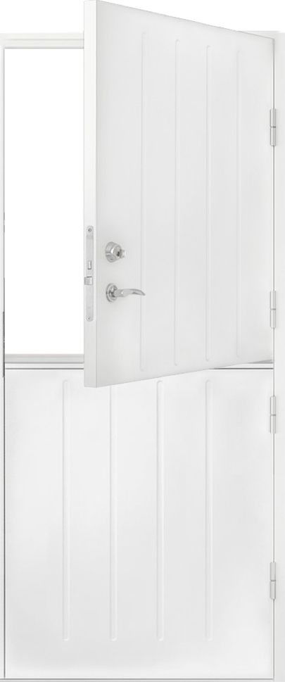 Yderdør Anna-Lena er en opdelt dør, der gør det muligt at åbne over- og underdel separat, hvis det ønskes. Smart når man fx vil lufte, men ikke slippe hunden ud. Døren har stilrene rillefræsede linjer og passer både til kabinen og det klassiske hus. Der er flere muligheder for at tilpasse døren til dine behov.