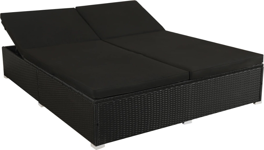 Havö er en rigtig lækker dobbelt solseng i sort syntetisk rattan med sorte hynder. Selvfølgelig justerbar i fem forskellige positioner for at finde den perfekte hvileposition.