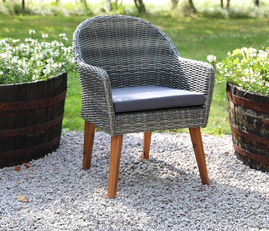 Havestolene, der indgår i denne udendørsmøbelgruppe, er Valetta og har en jordgrå kunstrattan med brune ben og en mørkegrå sædehynde. Denne udendørs møbelgruppe indeholder 6 stole.