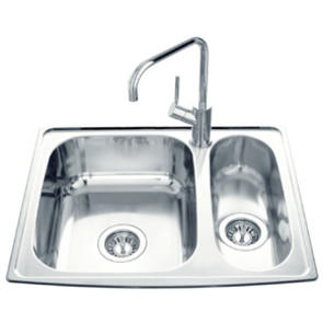 - Leveres med kurveventiler, overløb i den store skuffe og to hanehuller med hanehulsskive