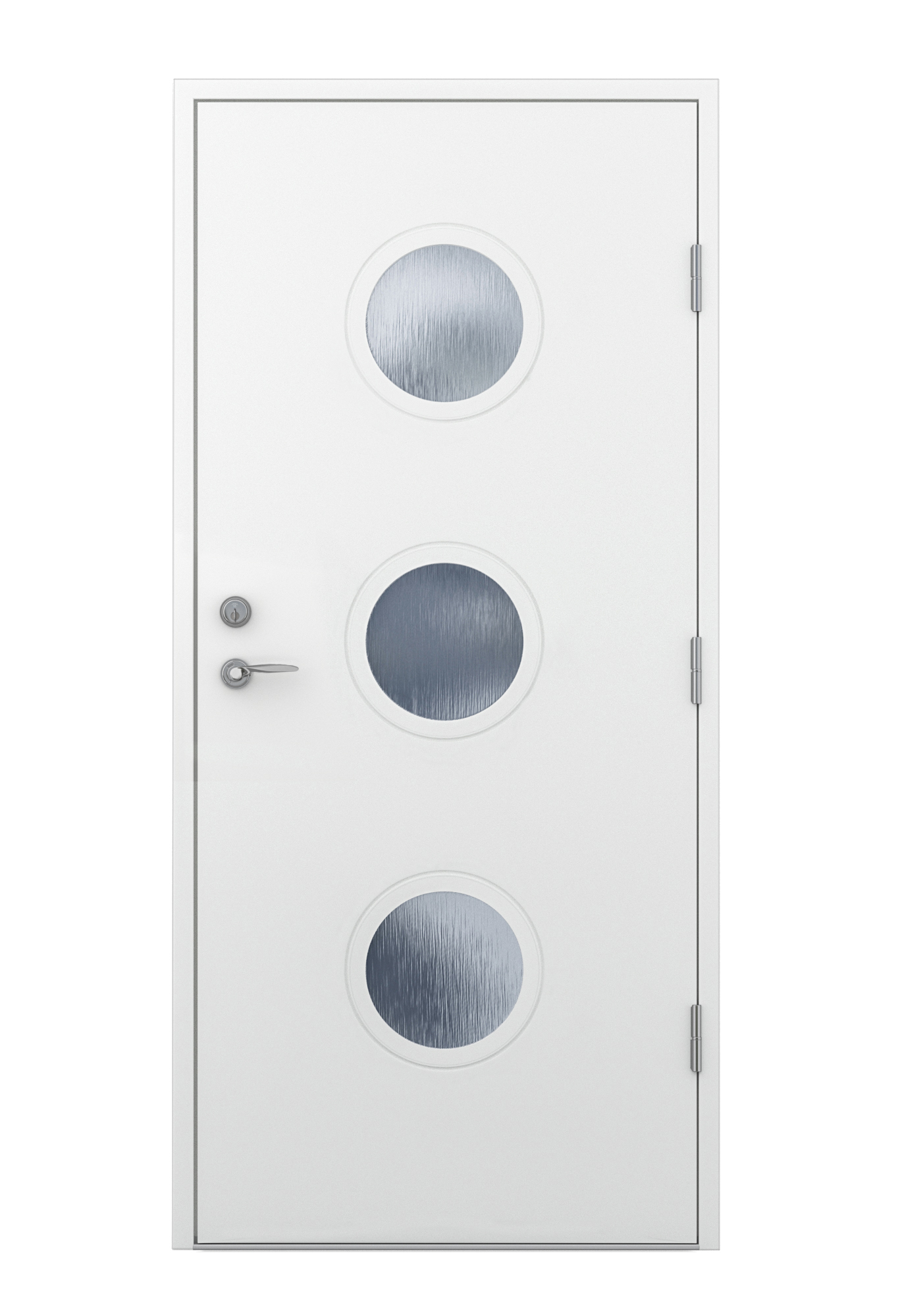 Hoveddør Clara har et cool design, der fremhæver dens placering. De tre runde vinduer har et dejligt lysindfald, der bidrager til dit indre miljø i hallen og bringer en følelse af kabysser og både med sig, men passer rigtig godt ind i den moderne arkitektur. Døren fås i mange forskellige designs, der passer til dine behov.