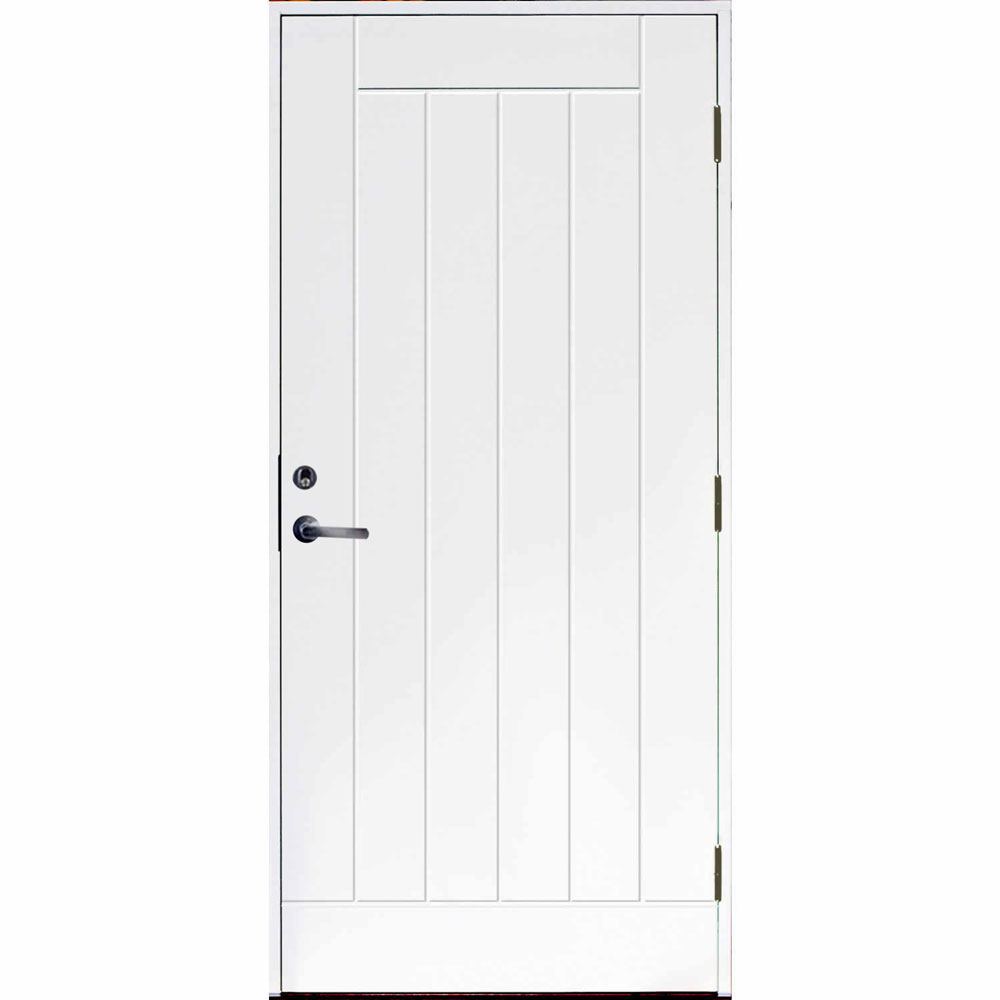 - Karm: Konstruktion i fyrretræ med 50 mm varmeisolering, og 0,5 mm aluplade på både inder- og yderside af døren.