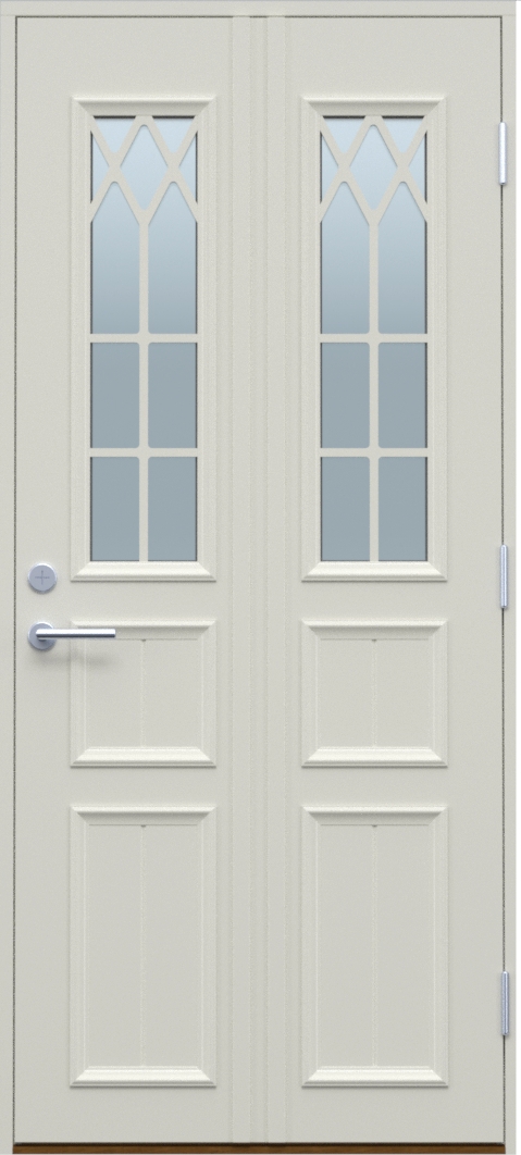 Denne klassiske dør har mange muligheder, herunder glasdesign, størrelse og meget mere, så den kan tilpasses dine behov og ønsker. Väderö passer godt til både moderne såvel som klassisk eller traditionel arkitektur.