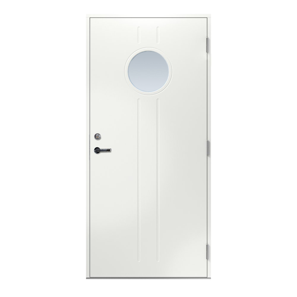 Hoveddør Moa har et kontrasterende design med sine lige linjer og runde vindue, som skaber et spændende udtryk. Dette runde vindue giver døren en bestemt bådfølelse for nogle. Mens den glatte overflade giver en stilfuld og moderne følelse. Moa passer godt ind i moderne arkitektur. Fås i flere forskellige størrelser.