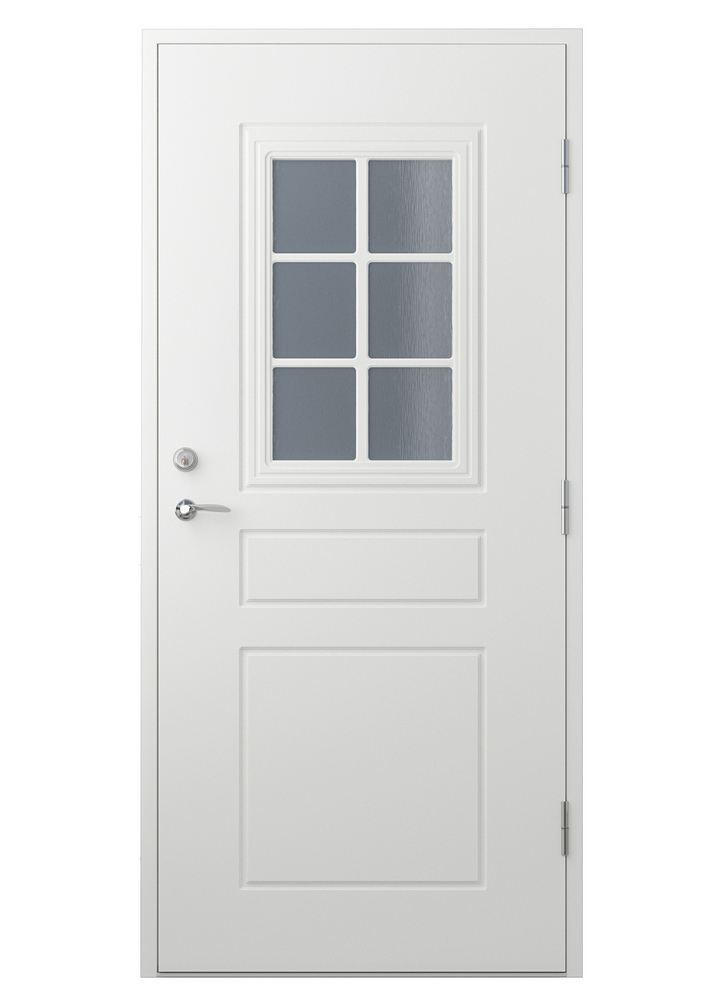 Indgangsdør Warsawa har et klassisk svensk design, som vi genkender godt. Det rektangulære vindue lukker et pænt lys ind og bliver sammen med lamellerne en smuk dekoration. Dens rillefræsede mønster danner enkle spejle nedenunder, der balancerer vinduet godt. Denne dør passer perfekt til den traditionelle eller klassiske arkitektur.