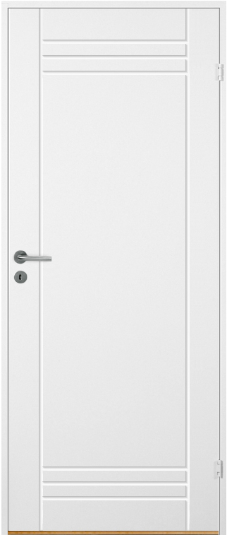 Hvidmalet kompakt indvendig dør med rillefræset indretning.