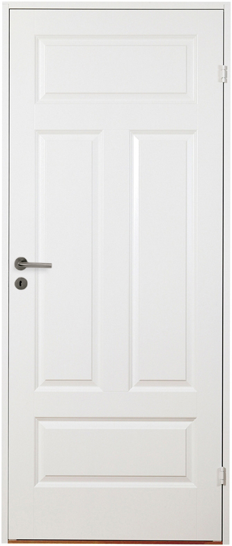 Hvidmalet kompakt indvendig dør med dekorativt panel i klassisk spejllayout.
