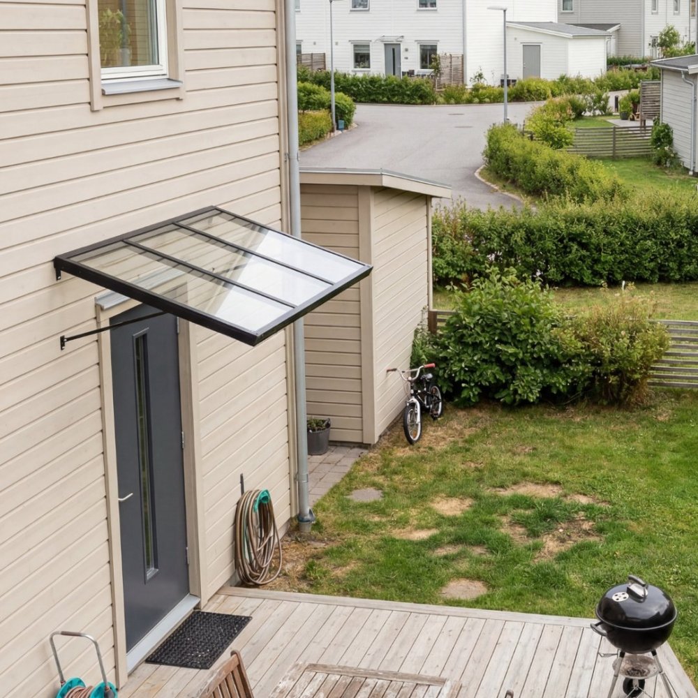 Perfekt til at beskytte indgange, døre eller vinduer mod vejr og vind. Dens elegante design og holdbare materialer gør den til et fremragende valg til både bolig- og erhvervsejendomme.