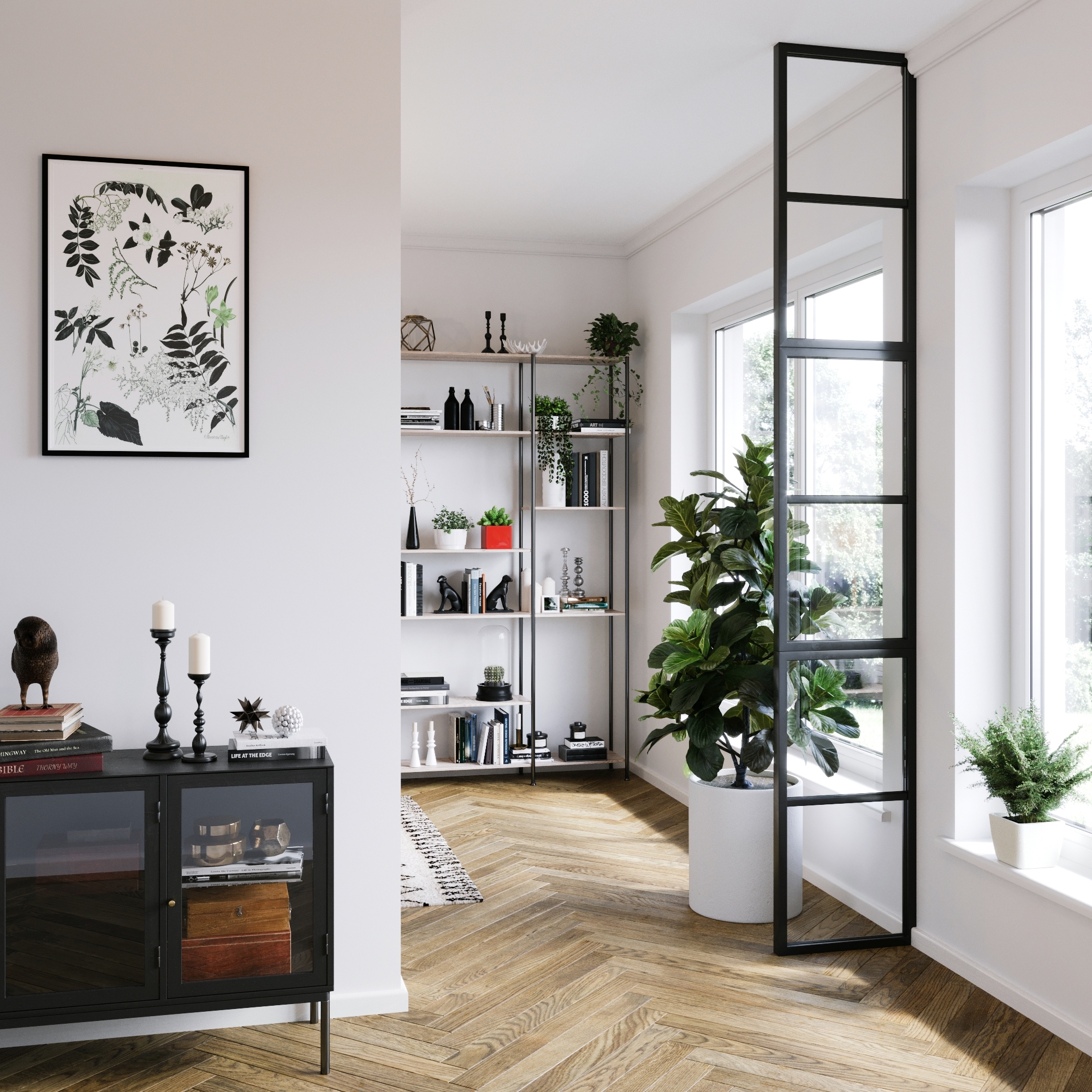 Ønsker du at give dit hjem mere følelse og karakter, er denne stilrene rumdeler i industrielt design et glimrende valg. Væggen er både stilfuld og praktisk, da den slipper lys igennem og giver rumfornemmelse samtidig med, at den afskærmer visuelt og dæmper en del støj.