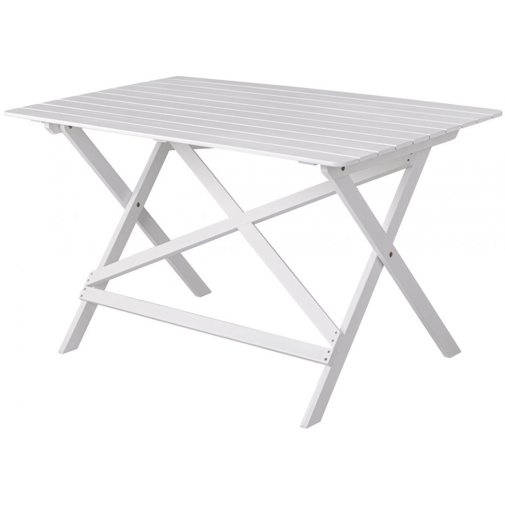 Spisebord i klassisk design i hvidglaseret træ, passer godt ind i de fleste terrasser.