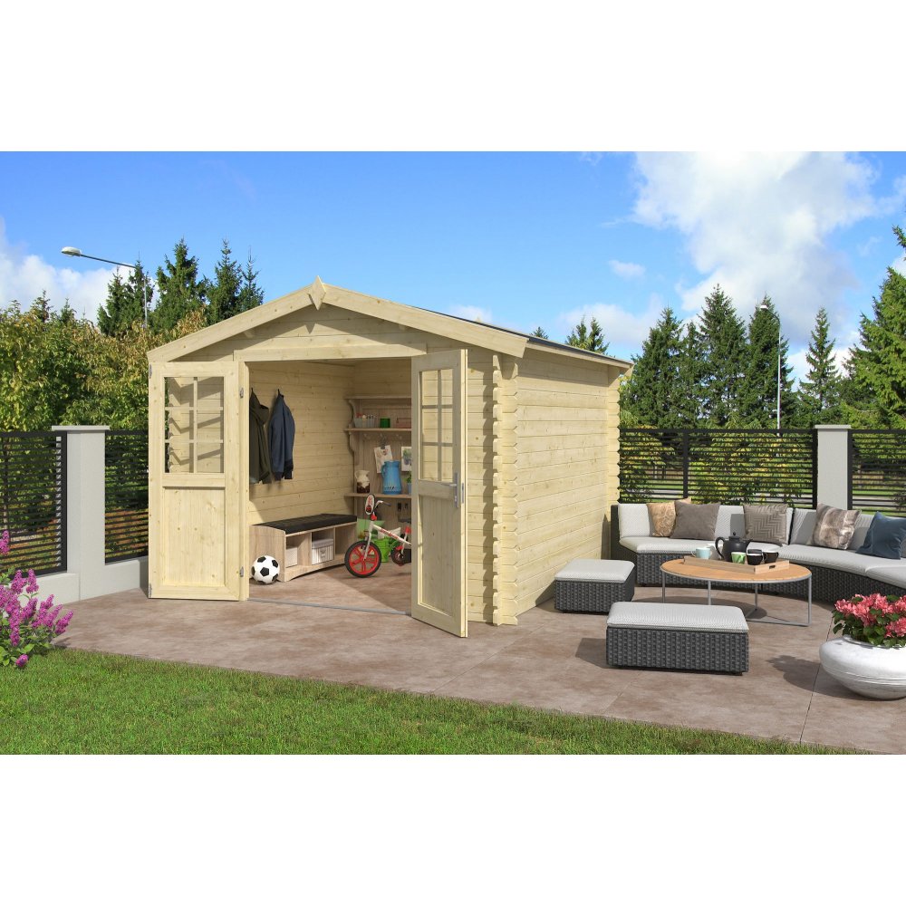 Dette opbevaringsrum leveres som et komplet byggesæt og er en simpel gør-det-selv løsning at samle efter den medfølgende tegning. Alt medfølger, der skal til for en komplet montage, dvs søm, skruer mv.