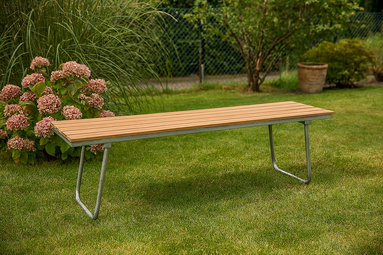 Möllan er en eksklusiv serie i klassisk skandinavisk design. Udendørsgruppen er lavet af galvaniseret stål med massivt olieret teaktræ. Dette gør udendørsgruppen vejrbestandig og holdbar til at klare udendørsmiljøet.