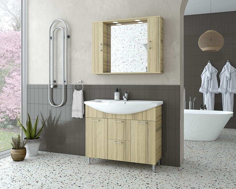 Møbelpakke Ritmo 95 - Natural Oak med spejlskab