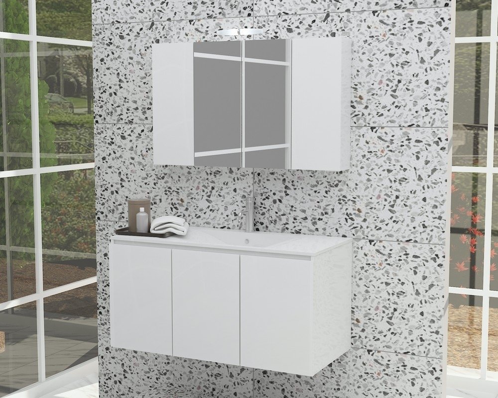 Møbelpakke Verona 90 - Hvid med spejlskab