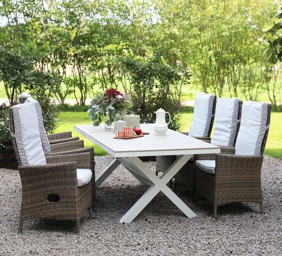 Mercury-sæt, grå/hvidt bord, stol i polyrattan