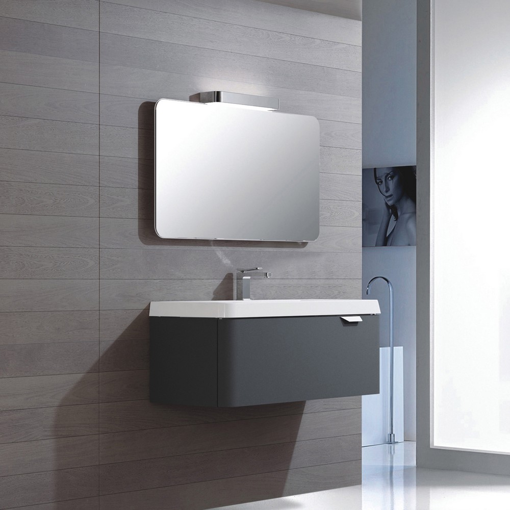 Det tilhørende spejl har ligesom resten af designet afrundede bløde kanter, som gør at de matcher hinanden godt. Den stilrene lampe tilføjer ekstra stil til møblerne og godt lys til morgen- og aftenopgaver.