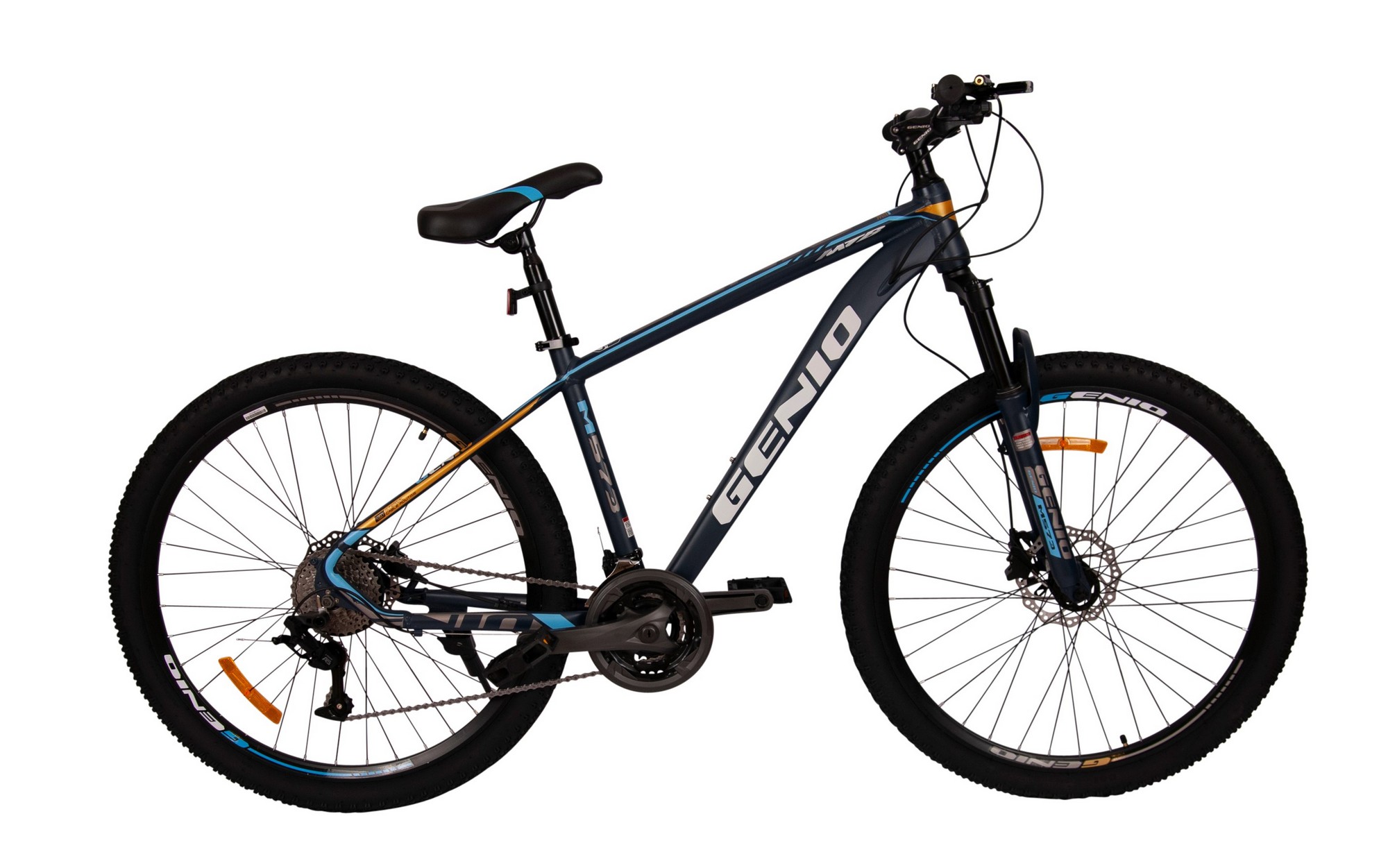 Sporty mountainbike med stødabsorberende forgaffel, der gør det nemmere at køre i terræn. Udstyret med skivebremser på både for- og baghjul for tilpasset nedbremsning. Cyklen har også hele 27 forskellige gear fra Shimano for nem tilpasning af cykelturen til forskellige situationer og distancer.