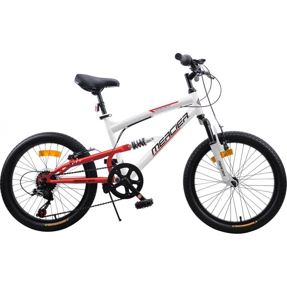 Den perfekte cykel til de små eventyrere! Vores robuste og lette at manøvrere cykel er designet til børn mellem 6-8 år eller med en højde på 1,2-1,4 meter. Med dobbelt affjedring og et slidstærkt stålstel garanterer denne cykel en sikker og behagelig cykeltur, hvad enten det er på asfalt eller i skov og mark.