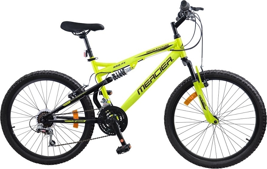 Giv dine aktive juniorer en cykel, der er både holdbar og komfortabel! Vores juniorcykel med dobbelt affjedring er den perfekte ledsager til eventyr mellem 8 og 12 år. Med en fuldaffjedret stålramme og en affjedret gaffel kan cyklen håndtere både bygader og mere udfordrende terræn med lethed.