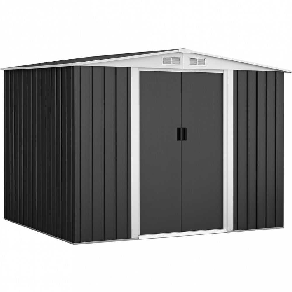 Dette Apex metalopbevaringsskur kombinerer funktionalitet, holdbarhed og et praktisk design, hvilket gør det til et godt valg til at holde din have organiseret.