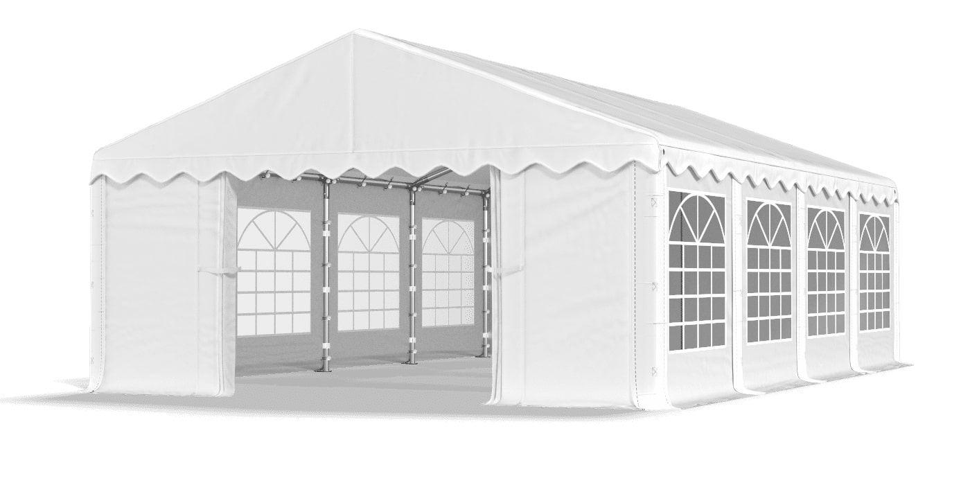 Sidevæggene er udført i tyk og slidstærk PE presenning 240g/m2 med stort funktionelt dekorativt vindue med lameller. Højden på væggene er 2 m. Ved hjælp af vinduerne placeret på hvert to-meter segment får teltet et mere visuelt tiltalende design, hvilket gør det perfekt til studenterfester, fester, fester samt udstillinger og events. Vinduerne lader dagslyset trænge ind, hvilket giver en behagelig og afslappende følelse ved udendørs ophold, samtidig med at den beskytter mod utøj og uønsket vejr. Væggene monteres på hvert to-meters segment ved hjælp af specielle elastikbånd, som også giver dig mulighed for frit at fjerne vægge for ekstra åbninger, så du kan tilpasse dine egne behov.