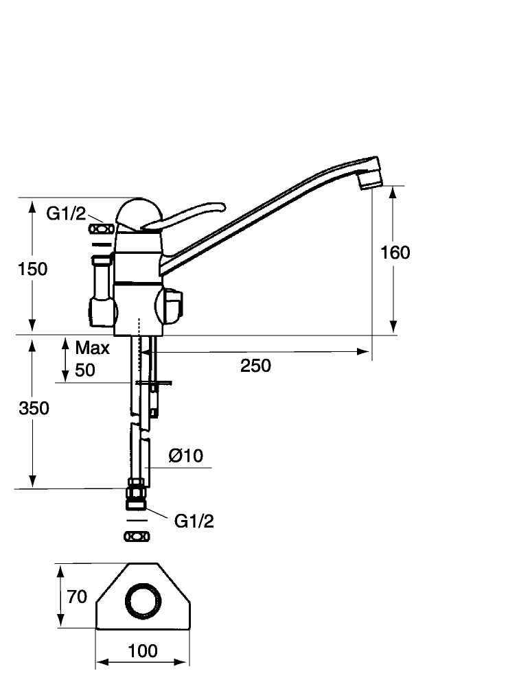 - Drejelig forbindelsesvinkel til bordopvaskemaskine.