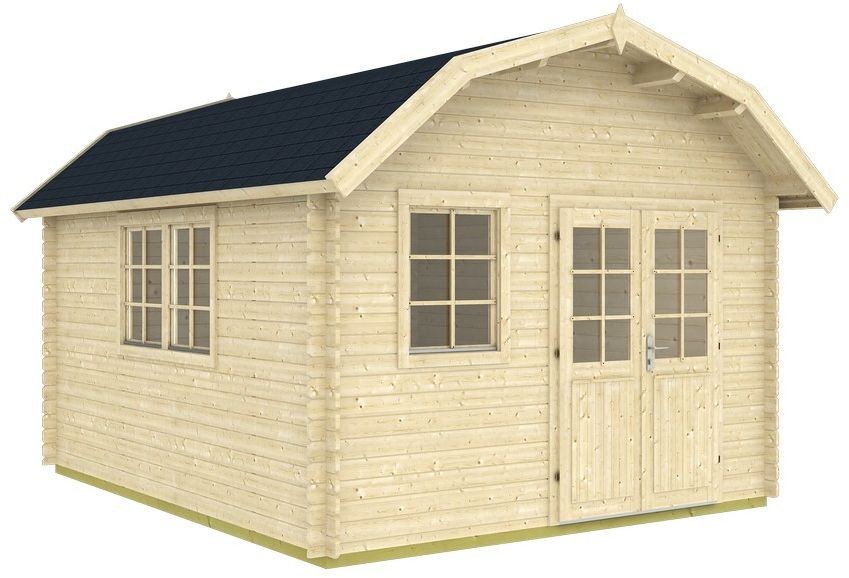 - Gulve og tag: Består af 18 mm høvlede og pløjede brædder. Taget er klædt med pap, shingle eller plader. Dette medfølger ikke.