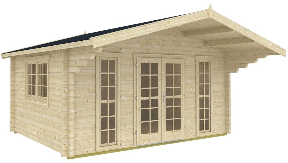 - Døre og vinduer: Fremstillet af ekstra tørret lamineret gran. Vinduer med 2 glas (3-18-3 mm) og tærskel til rustfri ståldøre. Vinduer kan åbnes indad og udad. Alle komponenter til montering medfølger.