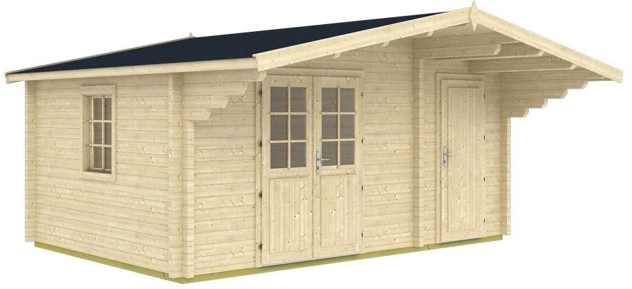 - Gulv og tag: Består af 18 mm råplade. Taget er beklædt med pap, singel eller metalplade. Dette er ikke inkluderet.