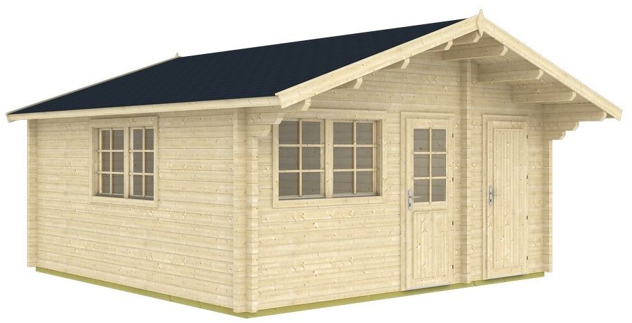 - Døre og vinduer: Fremstillet af ekstra tørret lamineret gran. Vinduer med 2 glas (3-18-3 mm) og tærskel til rustfri ståldøre. Vinduer kan åbnes indad og udad. Alle komponenter til montering medfølger.