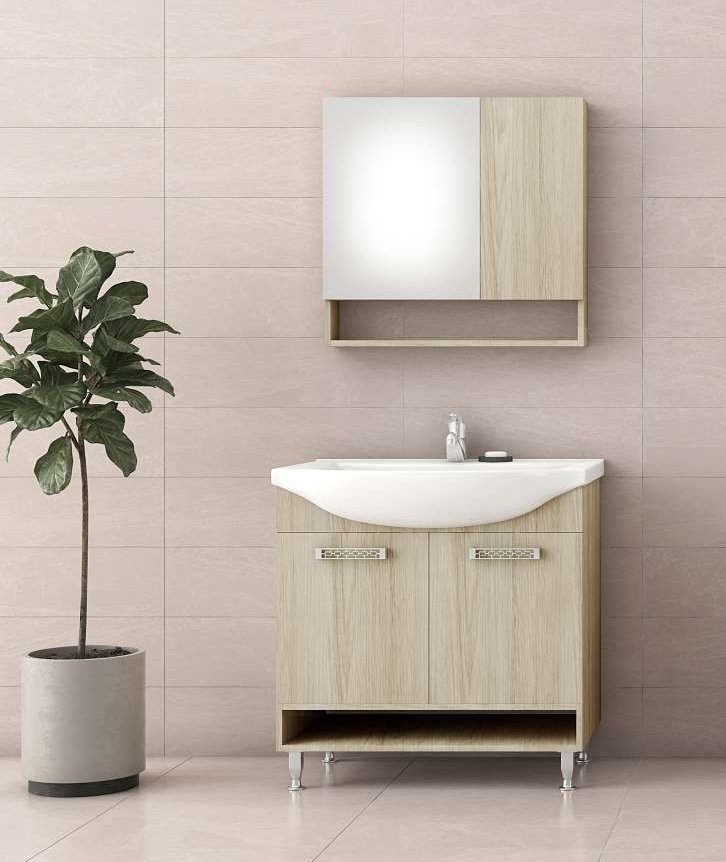 Badeværelsesmøbel Dolphin 75 - Træskåret med spejlskab