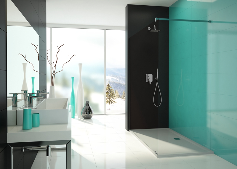 Brusevæg med glasparti af 6 mm sikkerhedsglas, glasbeskyttelse behandlet som standard. Glasbeskyttelsen GLASS PROTECT er en overfladebehandling, der får vandet til at løbe lettere af og efterlader meget få kalk- og snavsrester. Højde 195 cm, modellen fås i flere forskellige bredder mellem 80 -100 cm.