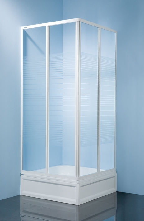 Brusehjørne med 2 vægge og skydedøre lavet af polystyren. Specialdesignede profiler garanterer en enkel døråbning.